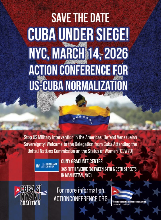Click Here To Watch! October 28-29, 2025 24 Hour Global Online Picket It's time to end the U.S. blockade on Cuba! Click Here For Part 1! Click Here For Part 2! Click Here For Part 3! Click Here For Part 4! Organized by: U.S. Cuba Normalization Conference Coalition October 26, 2025 International Week Of Actions Join The Vancouver Monthly Car Caravan To Lift The U.S. Blockade on Cuba!